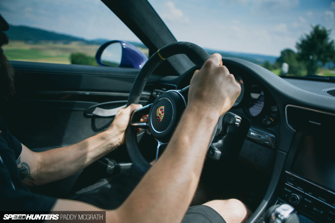 Approaching a downhill left, into a sweeping uphill right, Michael tells me that this is one of his favourite corners on the route. From the top of the hill, it’s perfectly sighted and with nothing to be seen, Michael tells me to hang on. It was at this point that I realised that the GT3 RS doesn’t come with ‘Jesus’ handles. Jesus, indeed.
