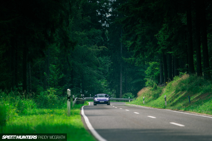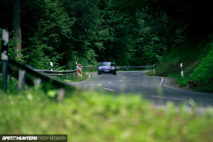 I wanted to capture some dynamic shots of the car and had a great road in mind. Descending from Höhe Acht back towards Adenau village itself, is your quintessential German driving road. Lined with trees, smooth tarmac and the occasional hairpin, it’s perfect.