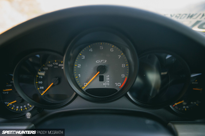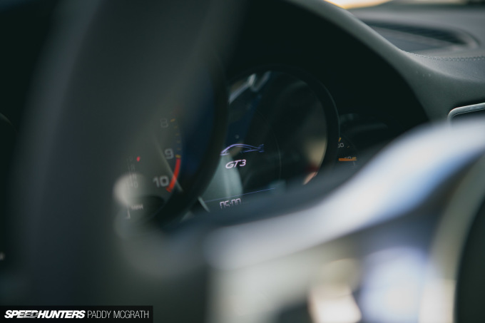 All GT3s of this generation are PDK or dual-clutch. I’ve driven a considerable number of DCT-equipped cars in recent times, but this felt different. One of the first things I noticed was that the manual selector was pull for an upshift and push for a downshift in manual mode. It’s the opposite of every other VW Group dual-clutch gearbox, but it’s how it’s supposed to be. This pleased me greatly as it’s a far more natural orientation.