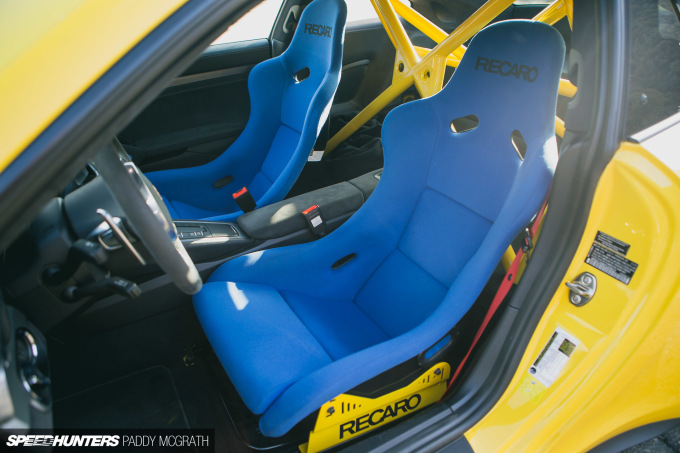 BBi Autosport is responsible for the half-cage, Rotiform for the centre-lock, GT3-specification LSR wheels. The suspension is factory, save for a change to Swift springs.