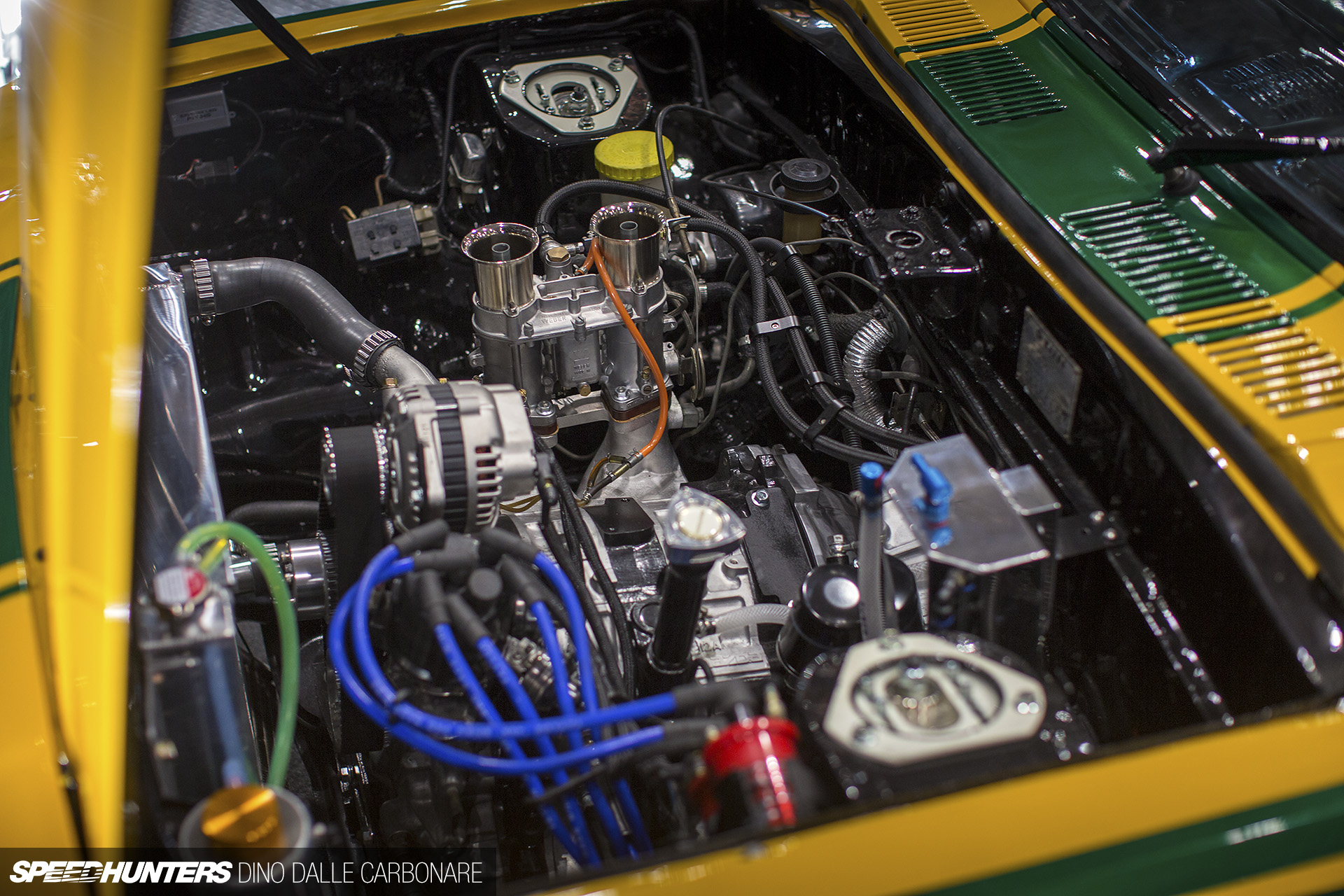 This is a full build; every detail was approached in a very classic way and nothing was overlooked, including the custom bridge-ported 12A rotary engine that provides 200hp worth of brap-brap fury.