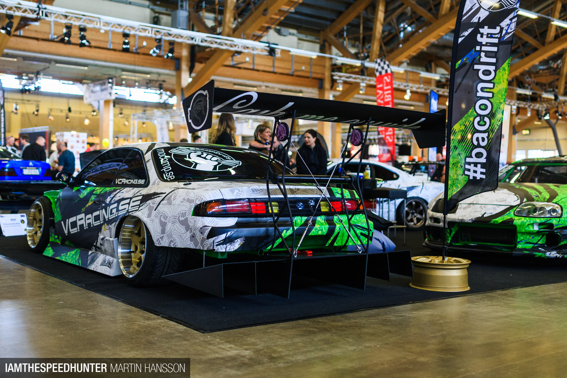 Further inside the hall was this Nissan ‘370JZ’ – can you guess what engine it’s running? The car started life as one of the special Nismo version 370Zs, but after being involved in an accident it was sold to Calle Linnarsson who has built an awesome drift machine out of it. Among other things it features a Samsonas sequential gearbox, Fat steering kit and Wisefab to keep the rear under control. The stroker 3.4-liter 2JZ-powered Nissan will compete in the Swedish Drift Championship and the Gatebil Drift Series.