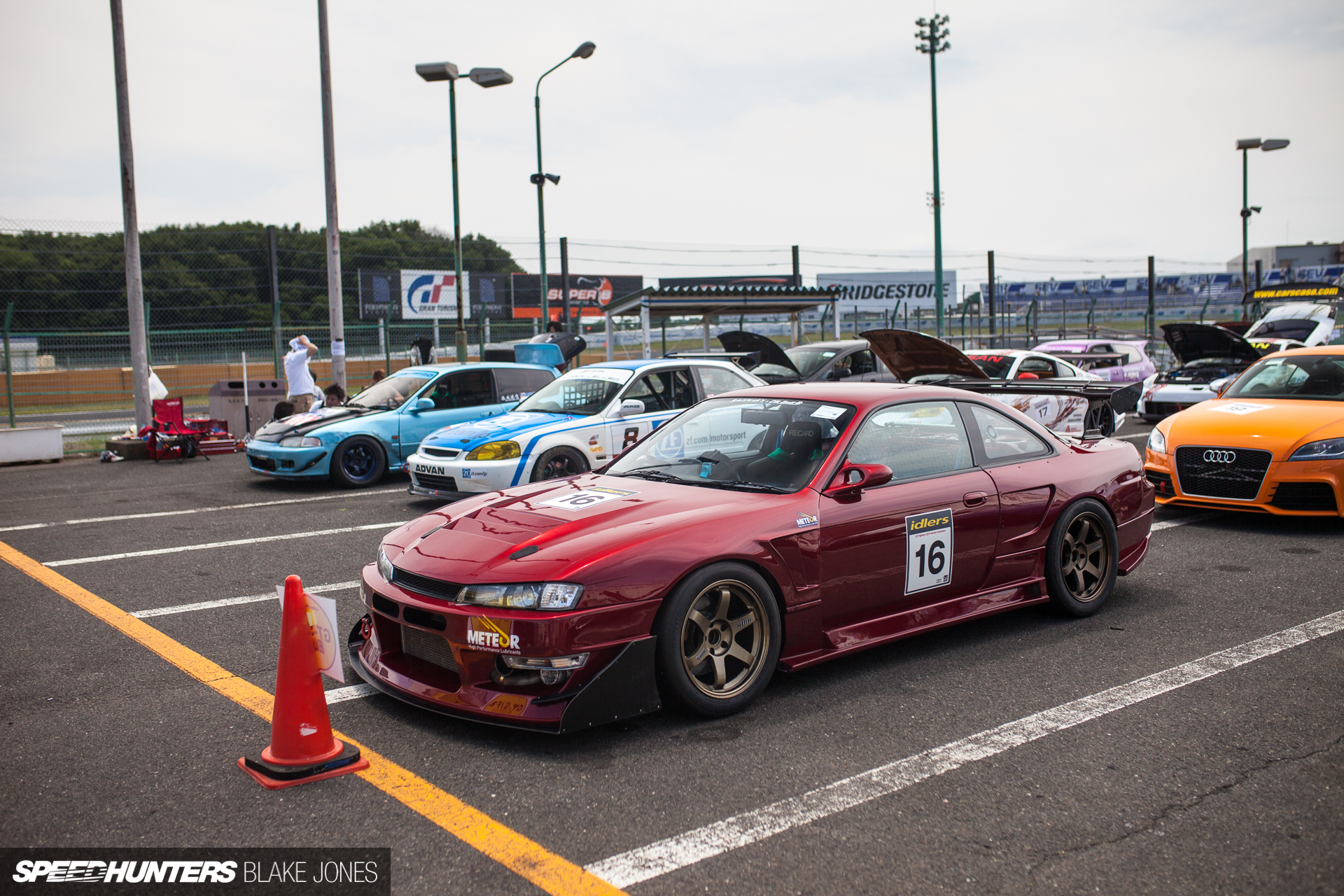 For a race car, the paintwork was mercifully free of an excess of graphics or stickers; these cool-looking Meteor stickers representing the car’s sponsor, a relatively small lubricants brand that makes its products in Japan and primarily promotes them through grassroots events like idlers.
