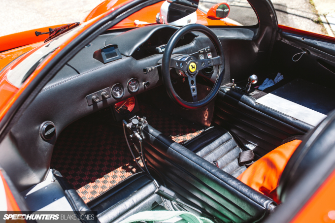 A quick look through the rear plexiglass at the intake manifold suggests that the mid-mounted V8 was donated from a 348. Although not a V12 like the original, it’s still a great match for the chassis; this is definitely a replica I can get behind.