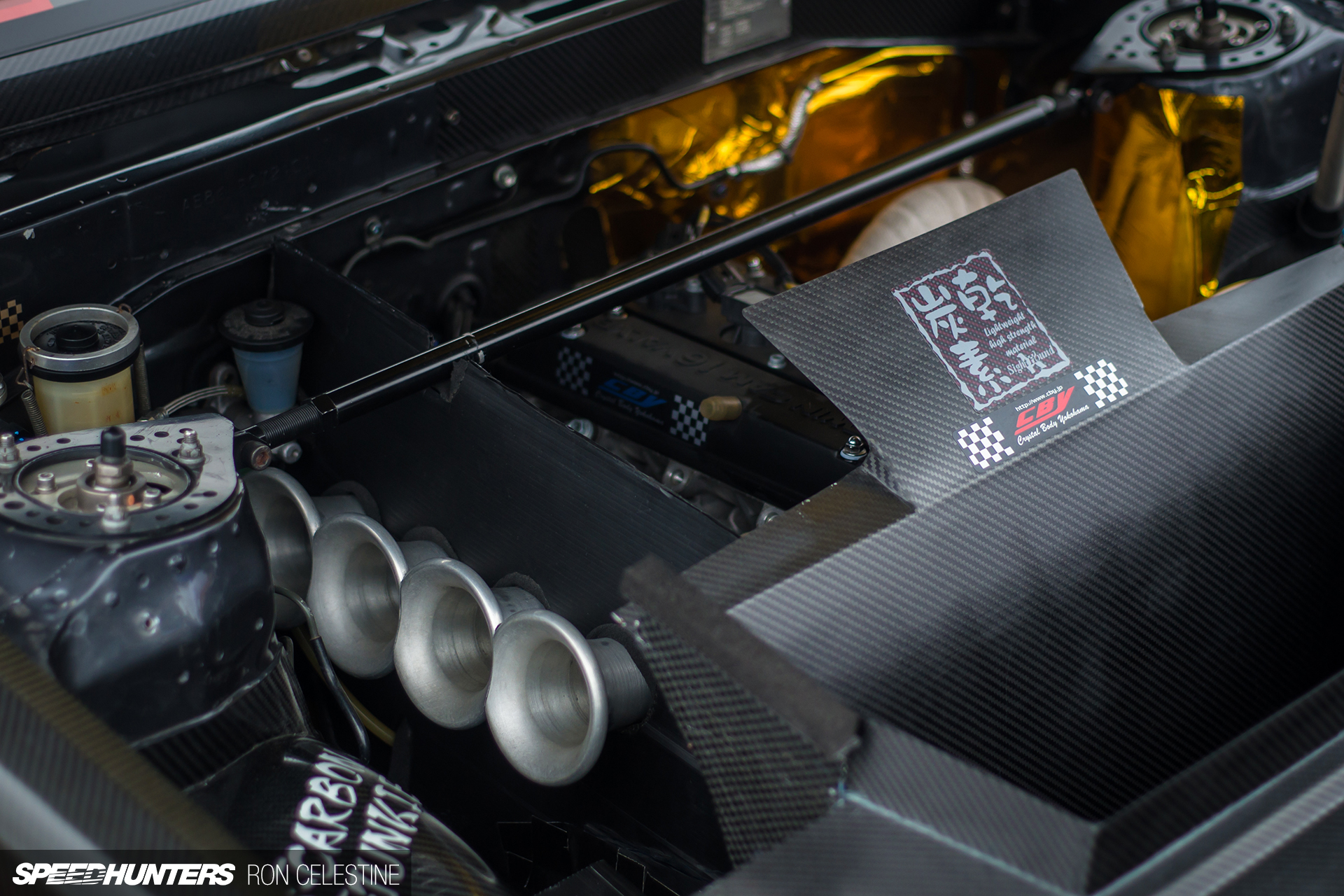 However, if you’re not packing a lot of power under the hood, shedding weight can be hugely beneficial. Case in point, Takumi Hayashi’s carbon fiber-clad AE86 Levin.
