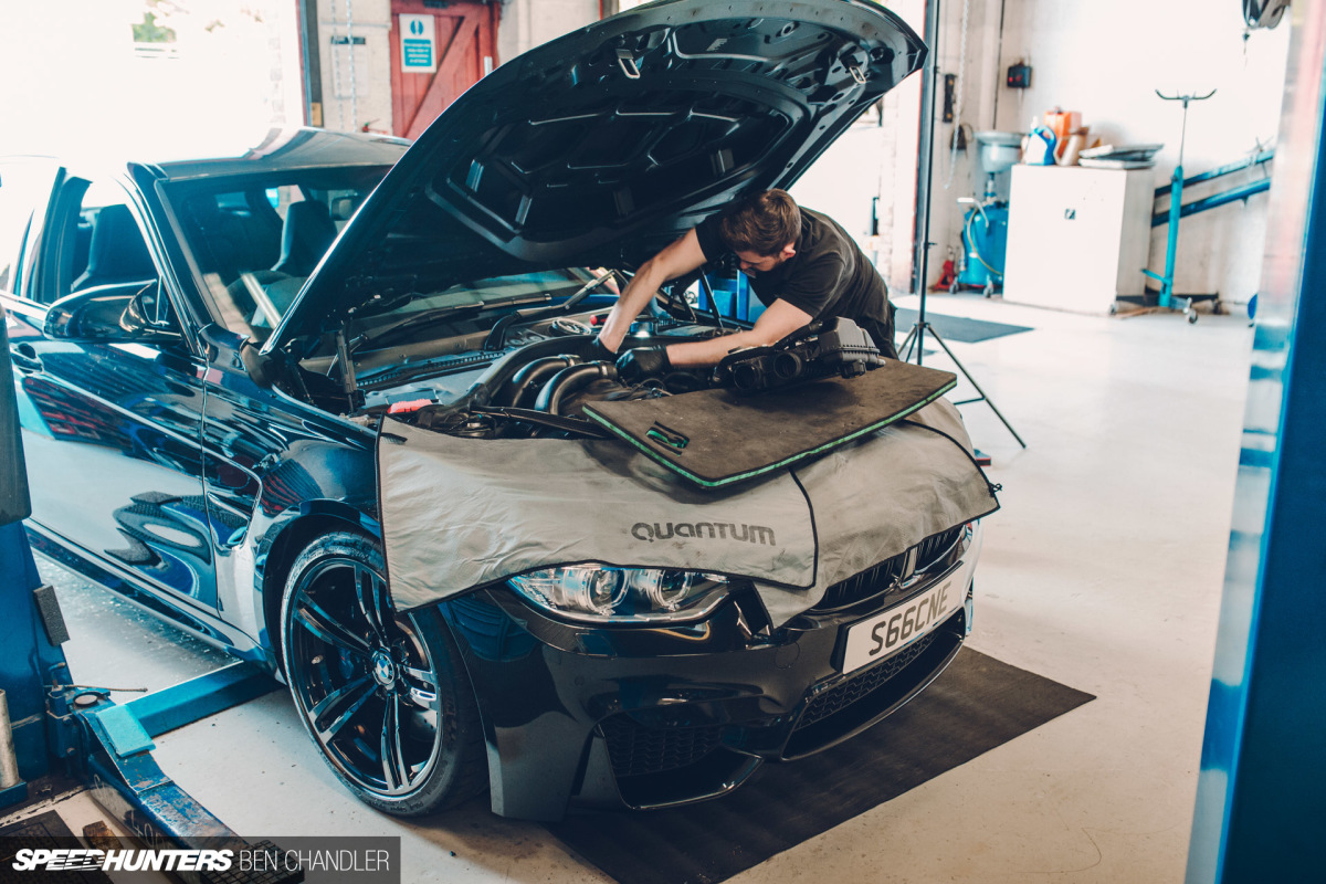 I’d also been following the 80-plus page thread on f80.bimmerpost.com and knew that I didn’t want to run a piggyback ECU tuning system. Having a tuning box installed wasn’t for me, so before you could say ‘Stop-Start delete’ and ‘M4 GTS features’, I was booked in. A couple of weeks later, I left London at 5:00am with a full tank of Shell V-Power, headed down to Southampton for a day of M3 tuning with boss man, Chris Stewart.