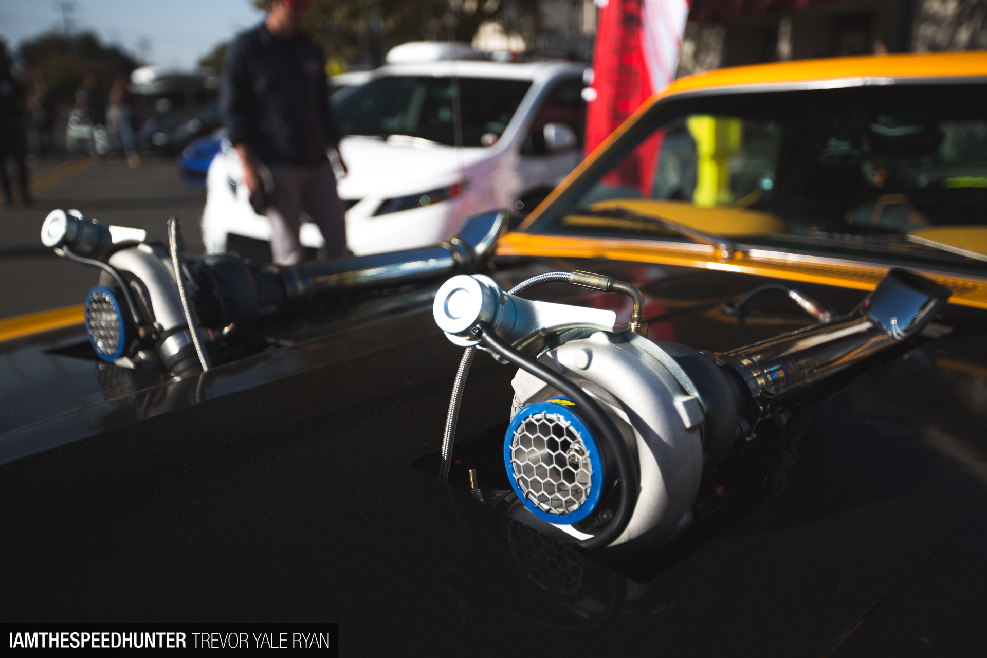 I see a twin-turbo '69 Mustang, so I pray that owner did not swap in an LS or an RB of some sort in, although I fully understand it's his/her car and he/she has the right to do so