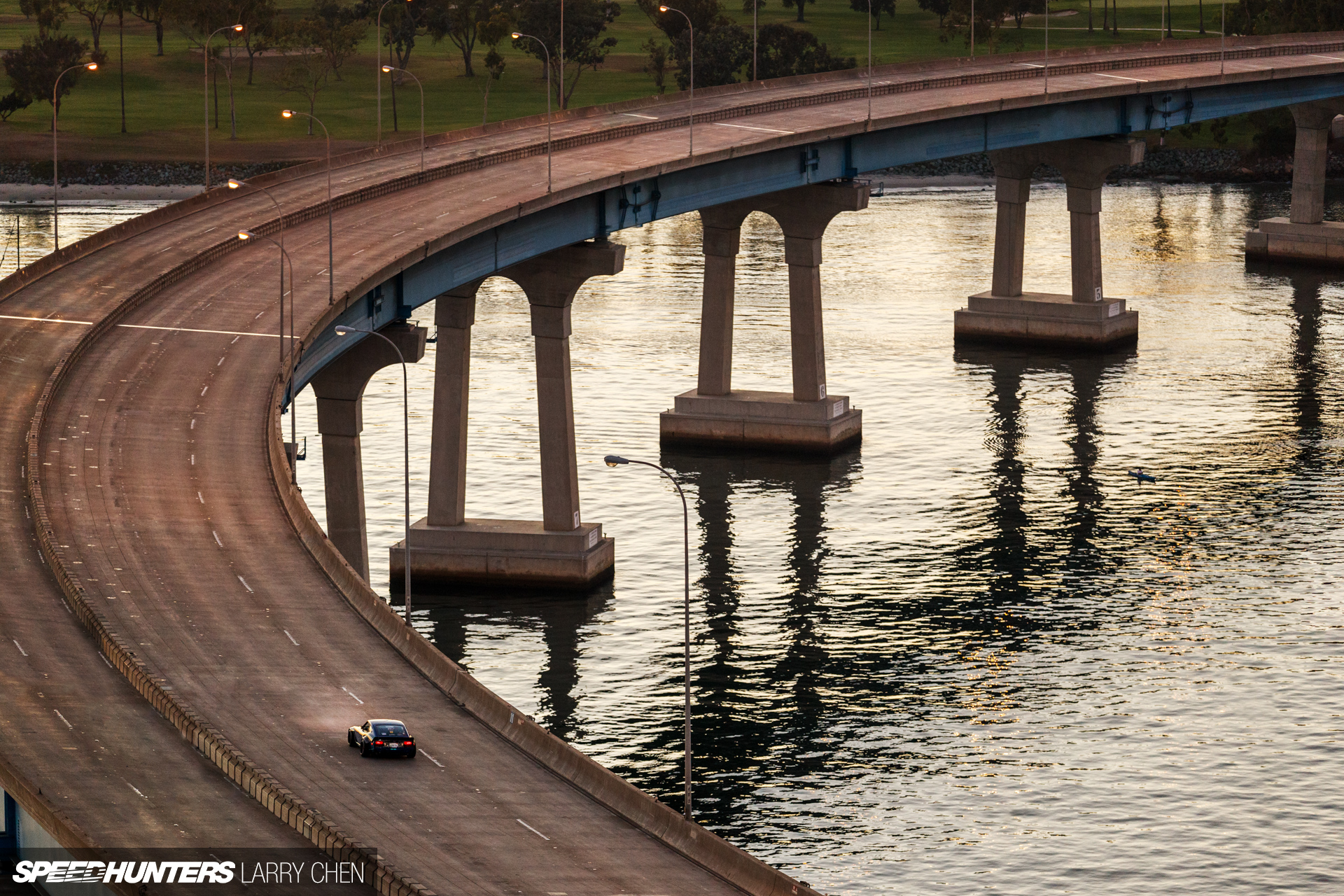Since Jun’s 260Z has a few hits of the Blue Devil Z and a few added elements of a Wangan racer from the ’70s, I thought the Coronado Bridge setting would work well.