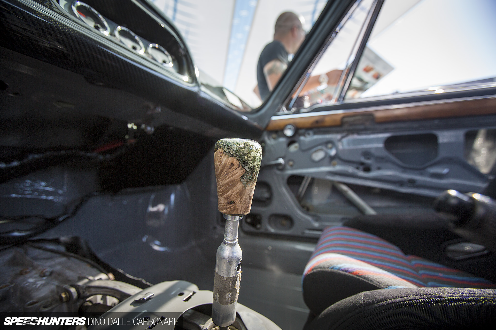 One of our favorite cars at the show, Willy Izaguirre’s ’73 BMW 3.0 CSL replica, has an interior that really drew us in for a closer look. We loved the bare metal against the carbon fiber dashboard and the seats that Willy’s mother ended up hand-stitching when her sewing machine broke down halfway through the job.