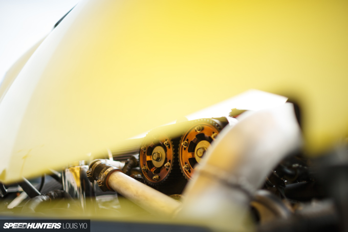 Undeterred, the engine came back out and a new set of forged pistons from Diamond Racing Pistons went in with Brian Crower rods for a 10.0:1 compression ratio, King Bearings keeping things spinning properly. A pair of GSC Power-Division S1 camshafts were also swapped in.
