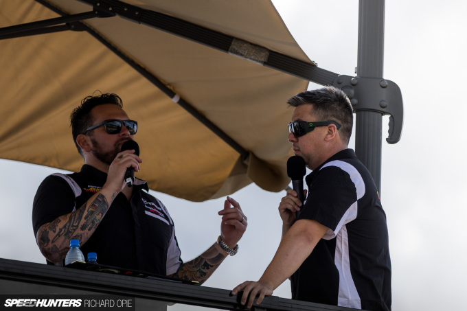 And while these open sessions provided a spectacle, the Top 32 invitational added the tension and excitement associated with competitive drifting. A measurable, if you will, and a means for the crowd to get behind their favourite wheelman. As a cherry on the top, enhancing the atmosphere was the voice of Formula Drift, Jarod DeAnda sharing the mic with local vocal-ninja Warren Sare.
