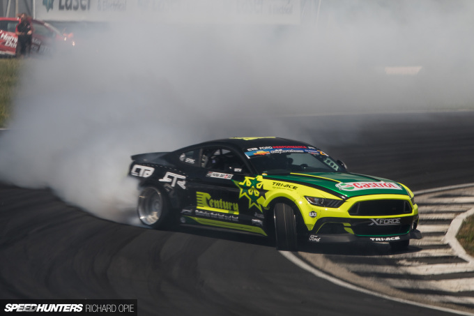Another much anticipated debut came in the form of ‘Fanga’ Dan Woolhouse’s newly minted RTR Mustang drift machine. This car isn’t his competition car as such – his actual Roush-Yates V8-powered monster is set for arrival early next year – but Fanga showed he was getting to grips with the left-side driving position of his ‘activation car,’ before a minor teething problem relegated the Mustang to display duties in the pits.