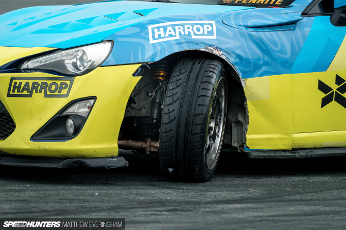 I say ‘near-stock’ but trust me when I tell you none of the modifications add any additional power to the asthmatic 4U-GSE (Or FA20 for you Subaru fans.) Every penny over the purchase cost went into optimising the handling to cater for the usual sideways shenanigans that come with being a part of the Drift Cadet hire fleet. A Kaaz 2-way LSD keeps the rear wheels spinning, a set of Shockworks coilovers firm up the ride, and a set of Hardrace rack-ends increase steering lock.