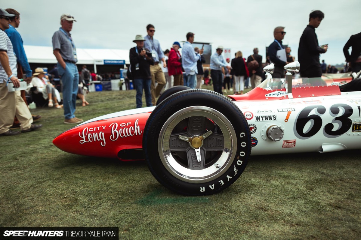 This ’67 Indy 500 car, the Mickey Thomspon ‘City of Long Beach’ Special, was an absolute piece of art. Previously wearing period patina, the car has very recently been completely restored to museum-quality condition. Again, concours was sinking its teeth deep into my mind. Get out!