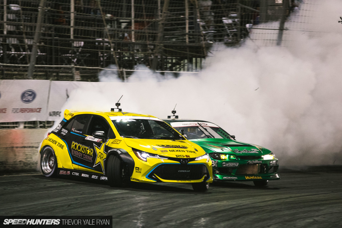 We’ve already said it, but this was a story that couldn’t have been written. If, and only if, two conditions were met in Irwindale could Aasbø just sneak by to become the 2018 Formula Drift champion. The first condition was that he needed to win outright at Irwindale, something certainly not outside the realm of possibility, especially seeing as how the Papadakis Racing Corolla took two wins and five podiums earlier in 2018. The second is that James Deane would need to get knocked out no later than the Great 8. This is the bit that seemed impossible, even on its own.