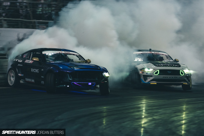 Of course James shared his victory with Gittin Jr, who had driven the wheels off his Mustang (certainly the bumpers, at least). From a season where things really didn’t go his way, Gittin Jr had pulled one of the highlights of Formula Drift history. Someone owed someone else a beer or two, I feel…