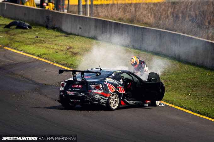 Late afternoon and a bruised and battered Kosta received a hero’s welcome as he reemerged on pit lane. Broken ribs and car aside, the near miss had highlighted his true value within the tight-knit time attack community.