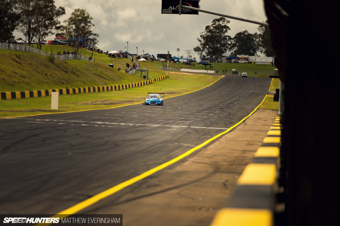 It was early Friday morning when I began the trek across Sydney Motorsport Park to an often forgotten corner. I wanted to see if I could capitalise on the enormous water rooster tales following in the wake of cars as they cracked on down the main straight.