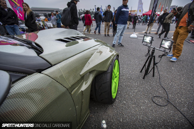 The paper-thin body panels, the aggressively cut base chassis, and the intricate tube structure keeping it all safe and rigid underneath – it’s so in line with what Daigo and his crew have built in previous years. Oh, and of course the massive 19-inch wheels and minuscule (read: extra light) Wilwood brake setup front and back – another signature of Japan’s most imaginative drifter.
