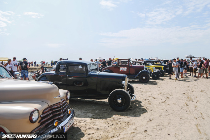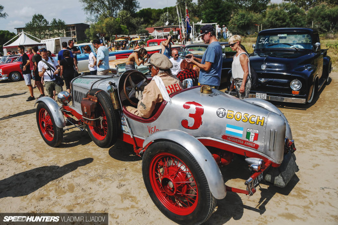 Italy isn’t the first place that comes to mind when I think of a thriving car culture, so I was surprised to see a big turnout at this event. According to ’50 Brothers, the local hot rod club that organizes Roll & Flat, there were 300 cars and bikes signed up for this year’s event at Caorle Eastern Beach.