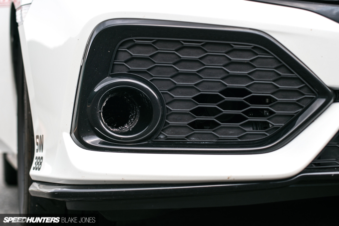 The current model Civic isn’t a car that instantly drew me in with its slightly awkward angles when I first saw it back in 2017. However, seeing this white example hunkered down over a classic Spoon wheel design did get me a bit excited.