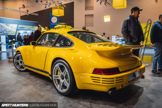 The second RUF car at Essen 2019 was this SCR 4.2, which like the CTR 2017 also features a full carbon fibre monocoque chassis and shell, but also benefits from an integrated roll cage. As you can see, it looks like a Porsche 964, but the chassis is actually based on that of a 993 model, albeit with a wheelbase that’s 70mm longer to improve weight balance and stability. The engine is a 997 GT3 unit that’s been stroked to 4.2L and now produces 525hp at 8,370rpm and 370lb-ft of torque. It weighs only 1,190kg and has a top speed of 322km/h.