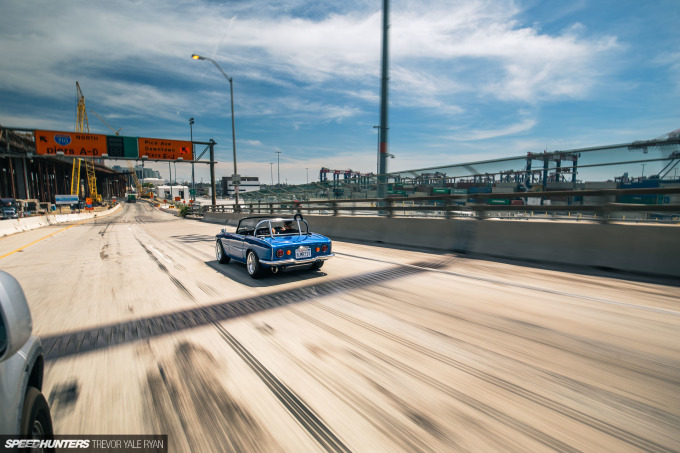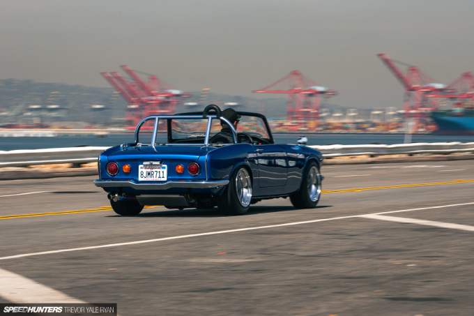 Power delivery through two wheels still yields very little traction with the street tires Johnny was running, but he’s confident with some sticky rubber the 0-60mph time would be well south of five seconds. A neat bit of trivia is that this S600 would pace its ultimate successor, the S2000, which had a 4.9-second 0-60mph time. The 55-year-old car certainly felt much faster than its modern counterpart riding shotgun, though, and it gets even better once the S600 starts taking some curves.