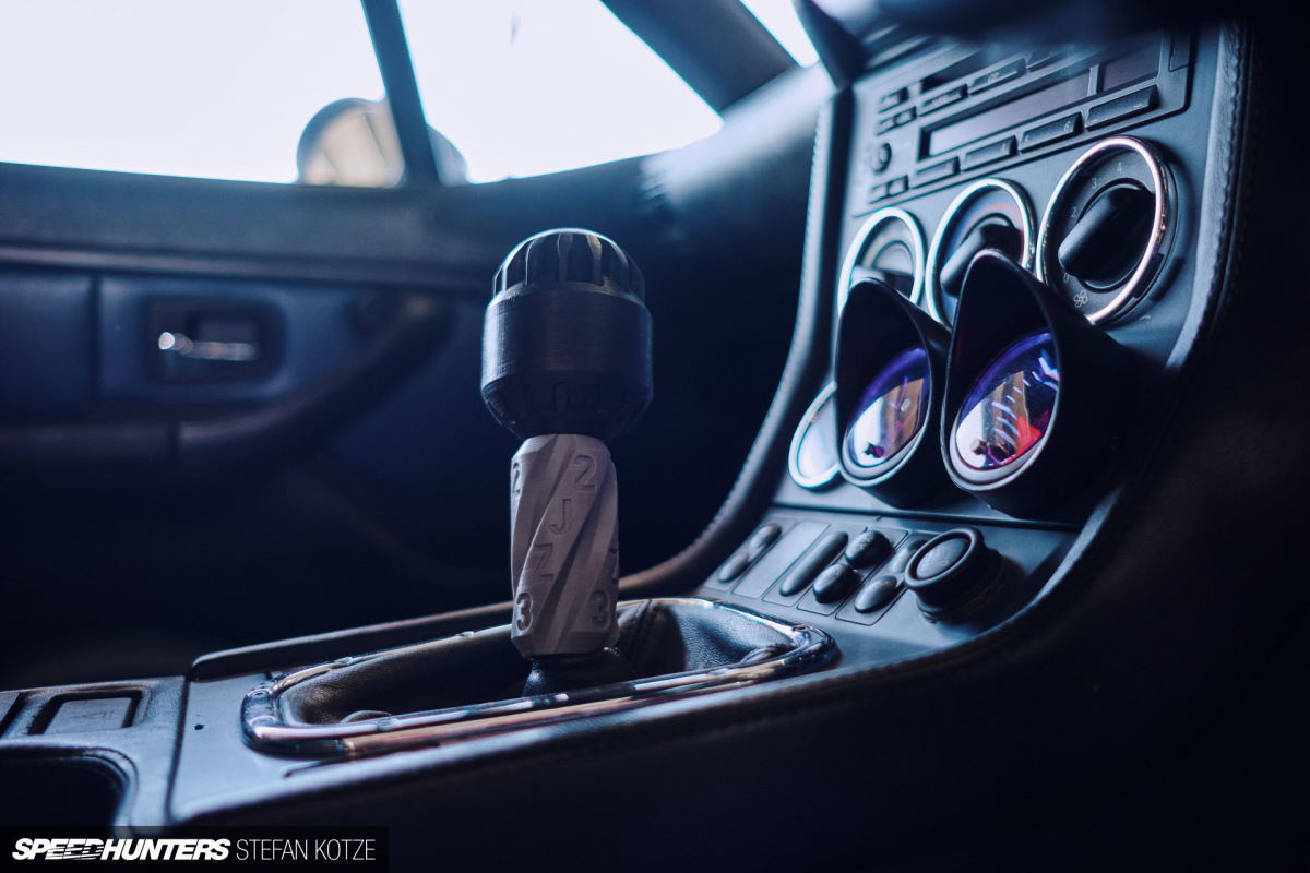 Inside, it’s a fairly stock affair. That’s not a bad thing, as the Z3 M Coupé interior is quite timeless. That said, a full suite of Prosport gauges have been added so Desmond can keep tabs on the under-bonnet happenings, and there’s a new gear lever and shift knob for the Toyota transmission.