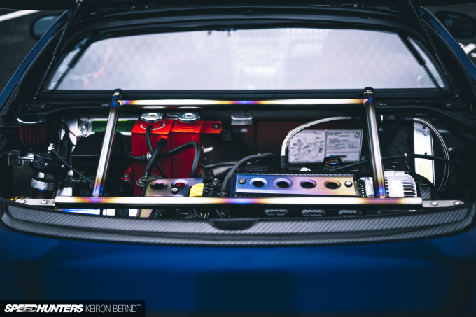 Those of you with eagle eyes may have already spotted the turbo hiding just rearward of the passenger tire. Given the car’s run-hard/stored-wet nature, Vittorio elected to drop the motor off at DMS Performance for a complete rebuild before power adders became part of the picture.