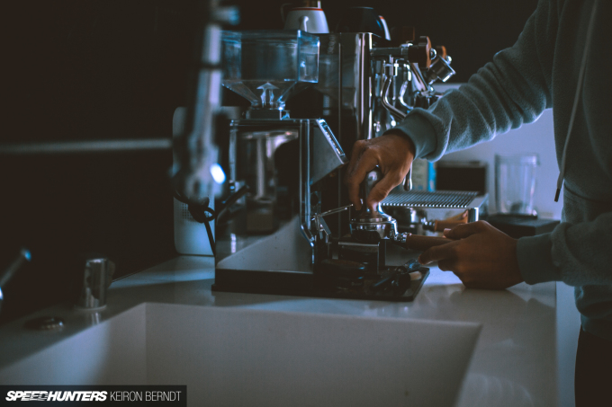 Usually I’d grab a tea on the way to an event, however Gustavo Menezes – a 24 Hours of Le Mans winner and WEC driver – happens to live in Jan’s neighborhood and had offered up a cup of what’s claimed to be some of the best coffee around.