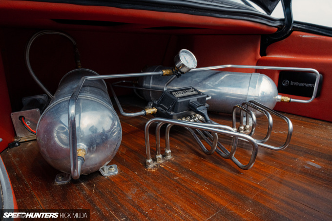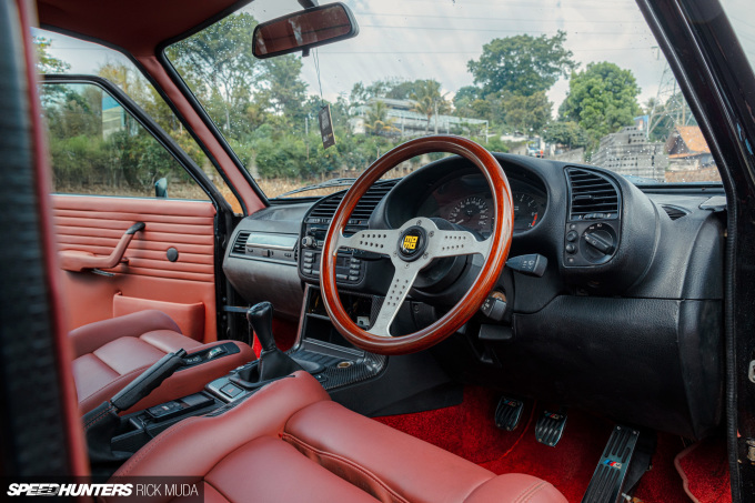Pulling the whole look together is the car’s stance. It’s low when in motion and extra-low when parked, all thanks to an Air Lift Performance air ride system installed by Artcustomworks Bandung. Again, Hakim built this car to not only look good but be driven, and the Air Lift setup provides that functionality at the push of a button on the digital controller.
