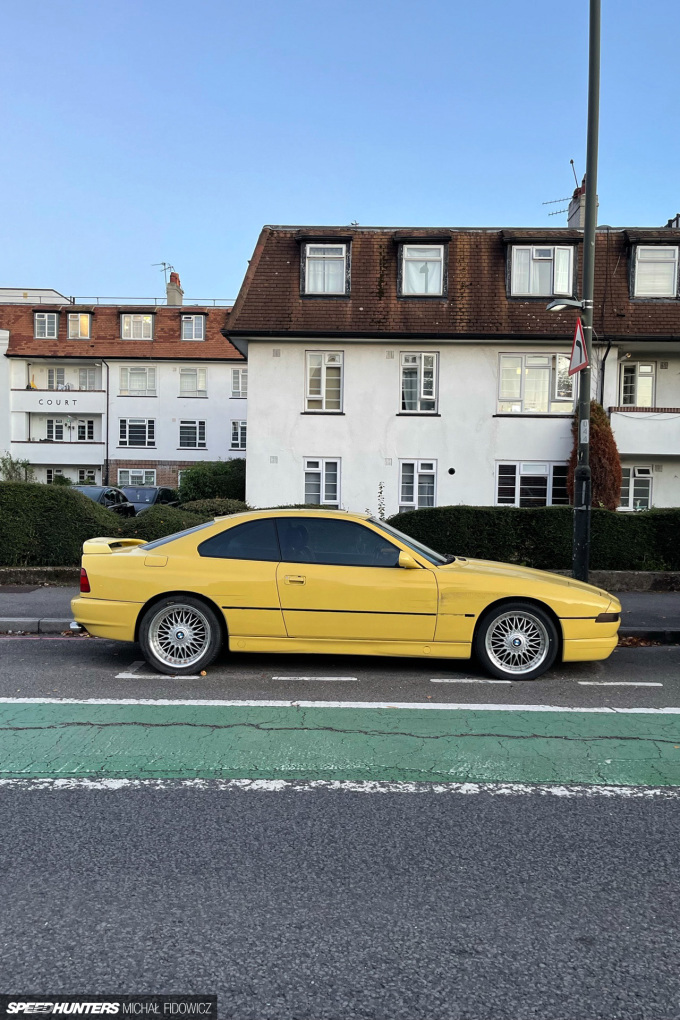 An abandoned E31 on the outskirts of London. Yes, this is the V12 one. And yes, it did have a manual gearbox. And yes, it is Dakar Yellow…