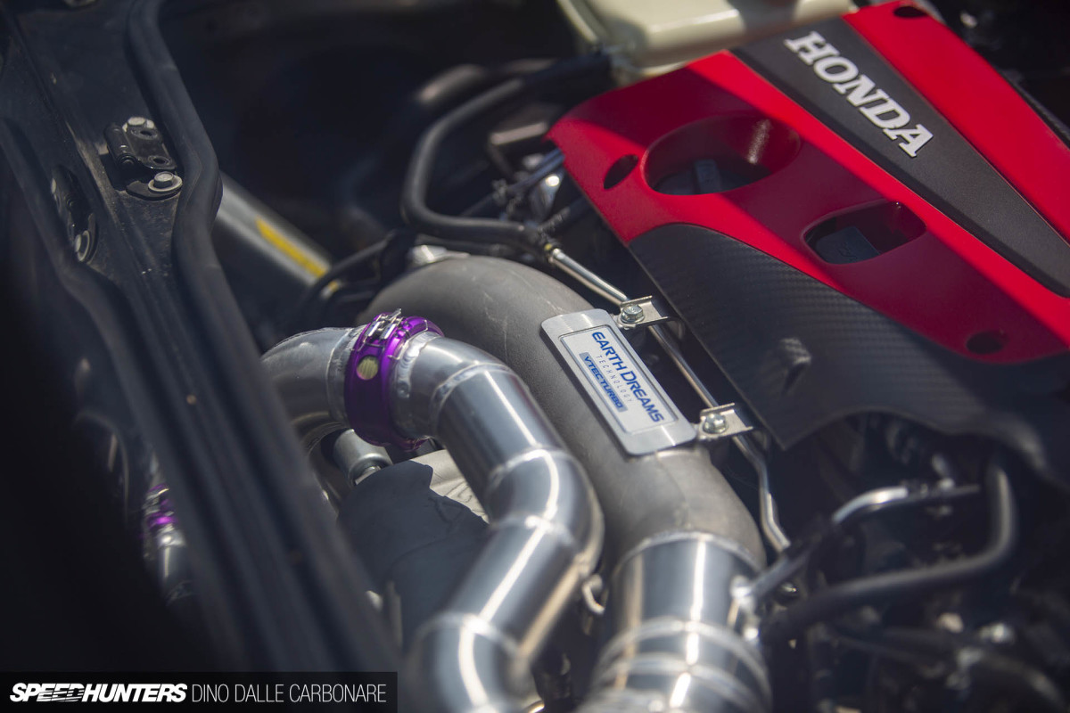 That’s when I saw the ‘Earth Dreams VTEC Turbo’ badge and realized what this could be. The owner, who was nearby, confirmed it – a K20C1 all-alloy 2.0L VTEC turbo four-cylinder engine from an FK8 Civic Type R.