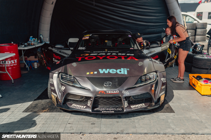 I stopped by Fredric Aasbø’s paddock pit to check out his Jon Sibal-designed Toyota Supra. People were quick to surround the car, and talk to Fredric and take selfies. What I didn’t expect to see was drifter Olav Haugen Hasdal asking for a photo, but it’s always fun seeing one driver be a fan of another.