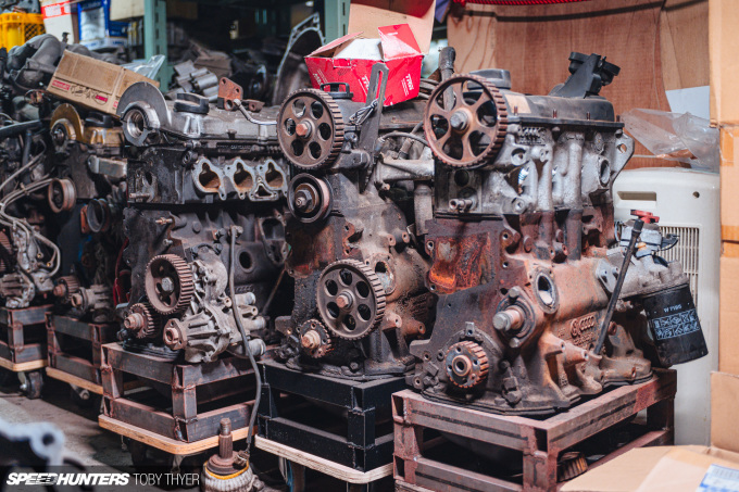 Stepping out of the workshop area is where things get interesting. Among the 200+ cars that litter the two yards, there’s a shed with not one but two Golf Country Syncro 4x4s produced by the military vehicle manufacturer Puch. Only 558 were made worldwide and only 110 where imported and sold in Japan. Of those 110, only 15 green metallic and 65 black cars were imported.