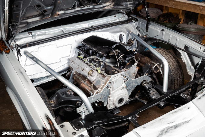 Although Scott initially had his heart set on a G-body Malibu, he wasn’t able to find one in his budget. What he ended up with was an ’82 Monte Carlo, which was purchased as a rolling chassis (with drag radials on the rear) from the Canadian classifieds website Kijiji.