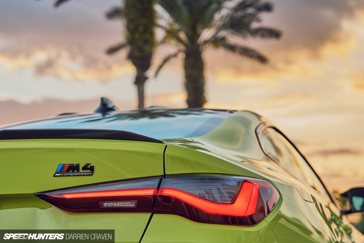 I feel sorry for Darrien here, because it’s one of those colours that seems to shift between green and yellow depending on the time of day, but it goes a long way of highlighting all those curves, creases and flares the M4 leaves the factory with.