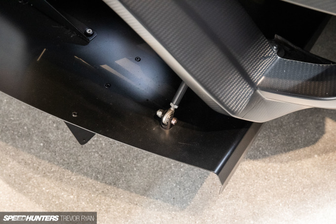 The wild-looking bodywork is accentuated with JG Racing’s front splitter and tension rod kit, which is balanced by a huge APR Performance GT-250 carbon fiber wing at the rear. The rear also utilizes a Difflow five-element diffuser for additional suction to the tarmac.