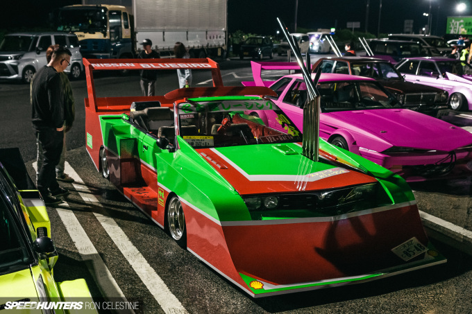 Wandering around, I also met Jon and Astrid, a married couple who build custom cars back in California under the Moonlight Runners banner. The pair have spent years researching and perfecting their craft in order to create authentic kaido racers in North America, and this pilgrimage to Japan provided a great opportunity to experience the local scene firsthand.