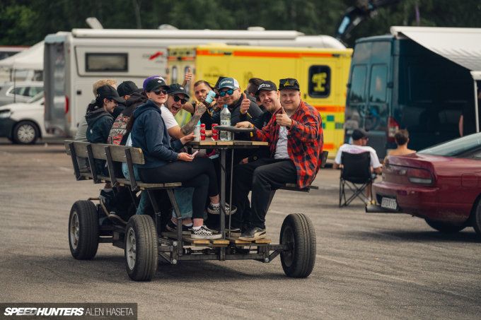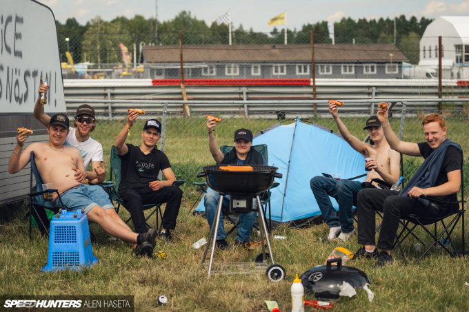 It might only be the second morning of the three-day Swedish event, but at this point, Mantorp Park’s camping grounds have already seen better days. Like the drivers on track, Gatebil spectators go hard.