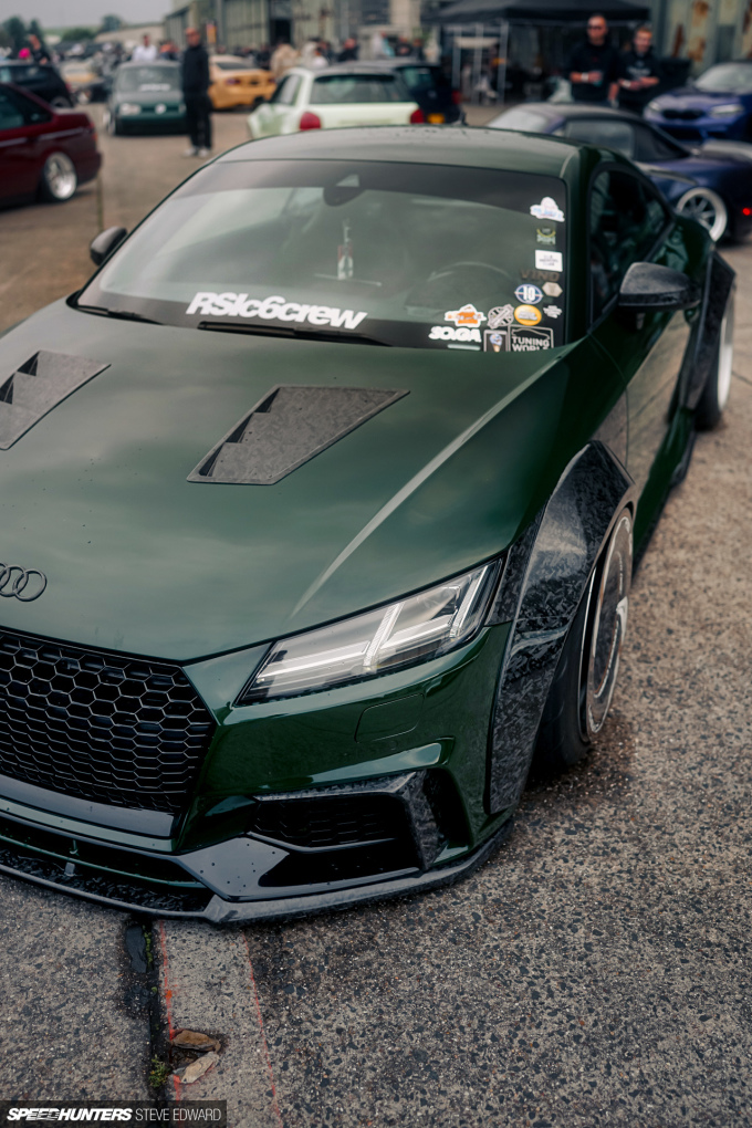 Most of the cars on show were unsurprisingly from Germany, others traveled a great distance. The latter included this Audi TT RS with wild forged carbon fiber overfenders and turbofans, which had come from Italy.