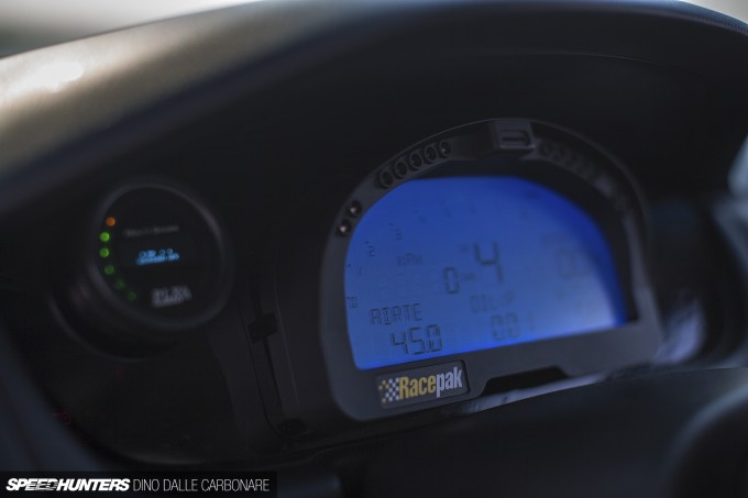 The dated Nissan stock meters are nowhere to be seen, which is great because they are a little surpassed in this day and age. Plus seeing as the Racepak is a straight plug-and-play for the Haltech ECU, this cool little dash unit slash data logger was a no-brainer sort of mod.