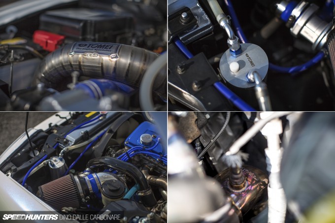 But hang on a second – why now? That’s what I asked Eiji Mihara at Tomei USA and he told me straight and simple that they don’t care about making money on these parts, they just want to be able to offer a decent level of support to their US customers that aren’t up for doing engine swaps. Fair enough I suppose, but what do the modifications entail? Well to start off, they’ve developed upgraded forged aluminium pistons as well as stronger connecting rods. Most of the parts are still in testing, therefore labeled as prototypes, but they’re getting good results already and are nearing proper production. On the demo car, the stock crank has been balanced and fitted along with the aforementioned pistons and rods to allow the motor to easily take a decent dose of boost.
