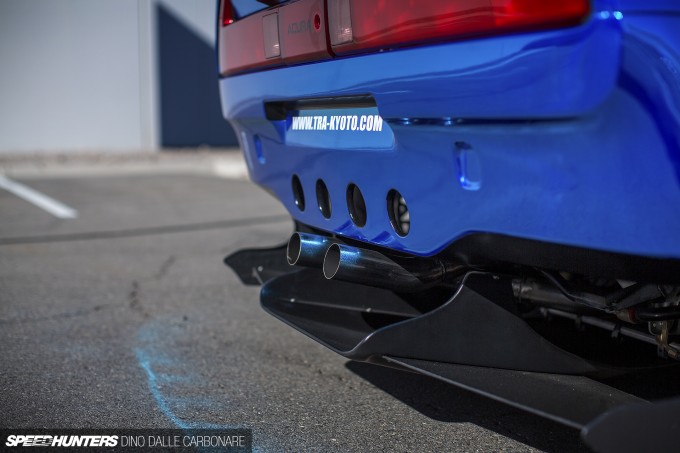 And seeing that a great car is never complete without actual substance, it’s the back of this SEMA 2014 show car that I’m starting off with. You see those two pipes that stick out from the center of the bumper? That’s a custom GReddy exhaust system designed to go along with the overall feel of the car.