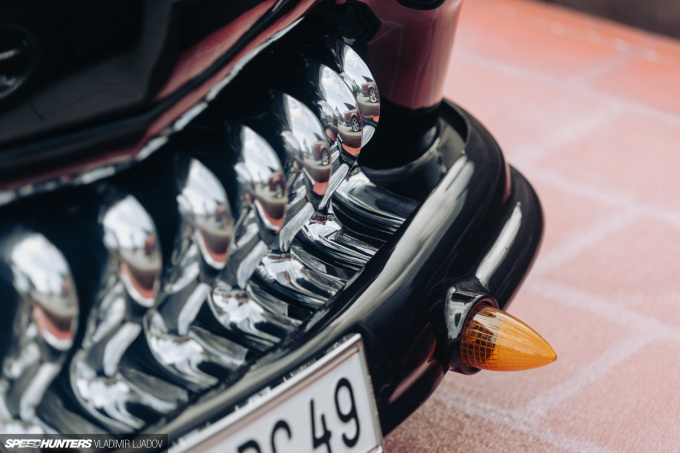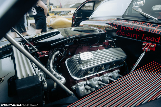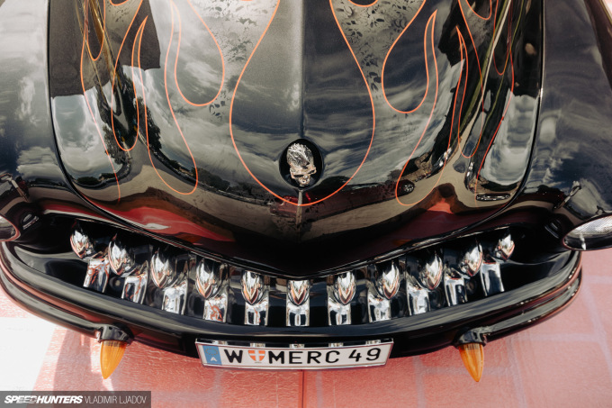The base for this masterpiece was a 1949 Mercury Coupe originally from Texas, already chopped but otherwise untouched. It was immediately shipped to Austria, where Knud and his team got to work on the monster transformation.