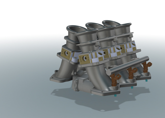 Design To ManufactureAfter a few printed plastic iterations, it was ready for the real thing. I had at one stage considered printing the final product in a strong and heat-resistant carbon-filled nylon but was eventually steered away from that by those who know better – the risk of the manifold flexing/warping due to heat/load and thus misaligning the throttles was substantial. Instead, I’d opt for CNC-machined 6061 aluminium.