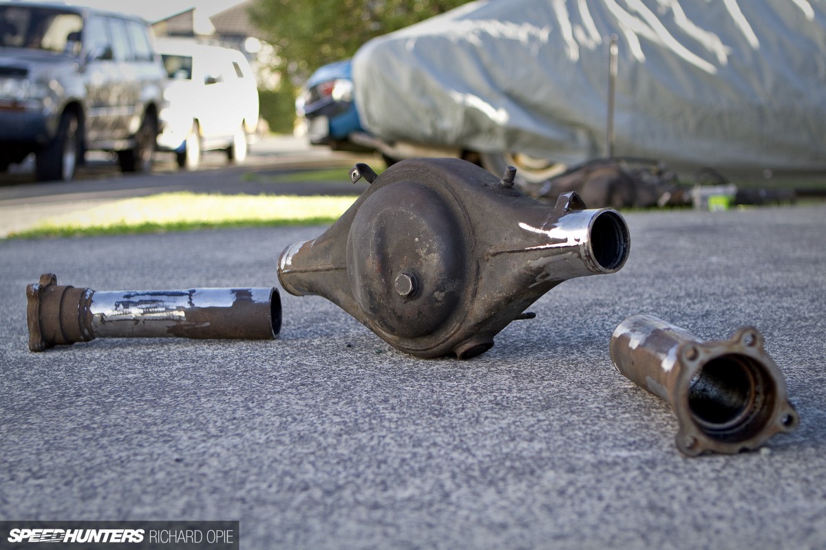 No more mounts? Measure twice, cut once on either side and the resulting kitset diff leaves you wondering why you just chopped up a pretty desirable old Toyota part. With a view to gaining some space in the rear arches, the housing was actually narrowed to be 10mm shorter overall than the factory item.